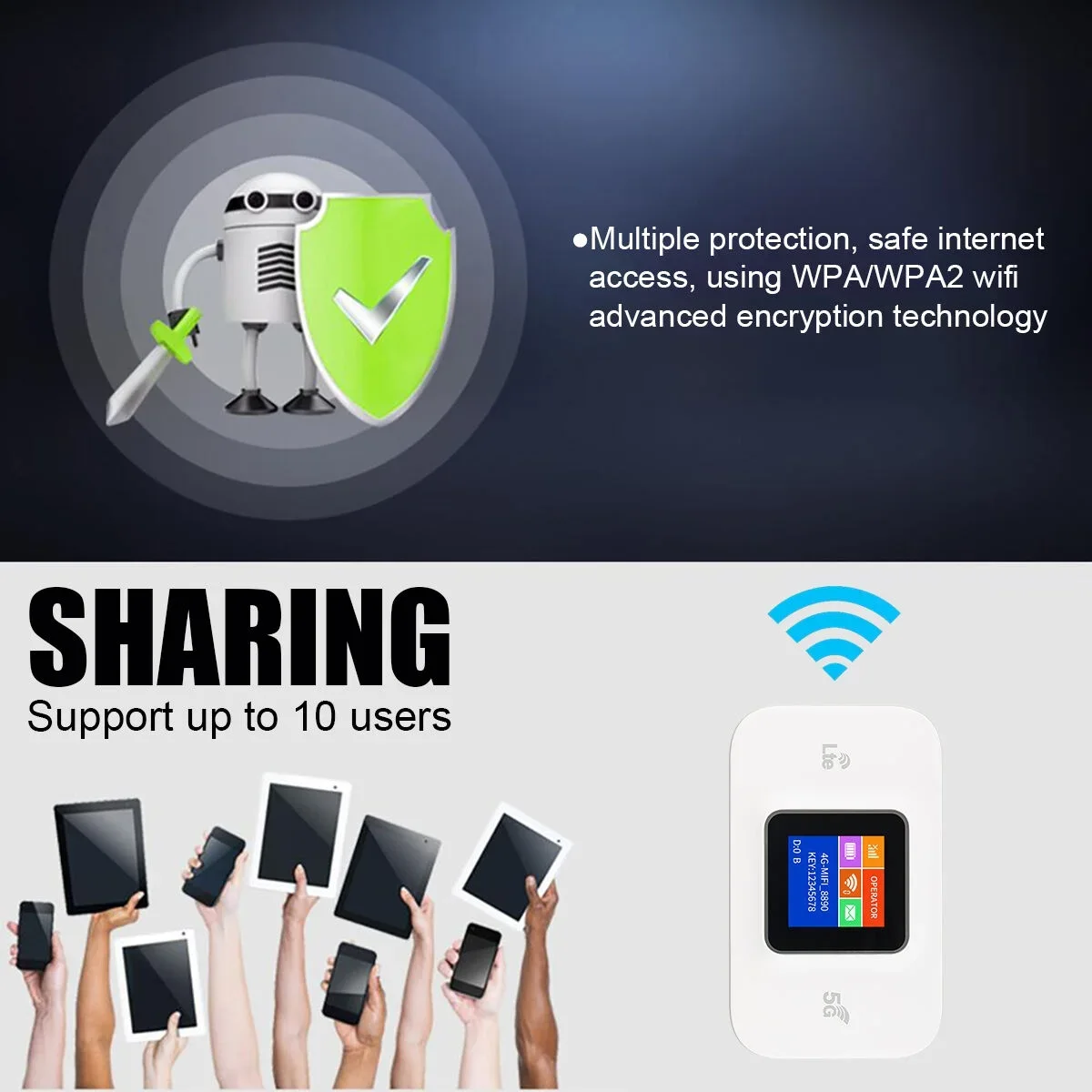 هو راوتر محمول من الجيل التالي يتيح لك البقاء متصلاً بالإنترنت أينما كنت. متوافق مع شبكات 4G/5G LTE ، يوفر لك اتصالاً سريعاً ومستقراً أثناء سفرك أو دراستك أو رحلات عملك.